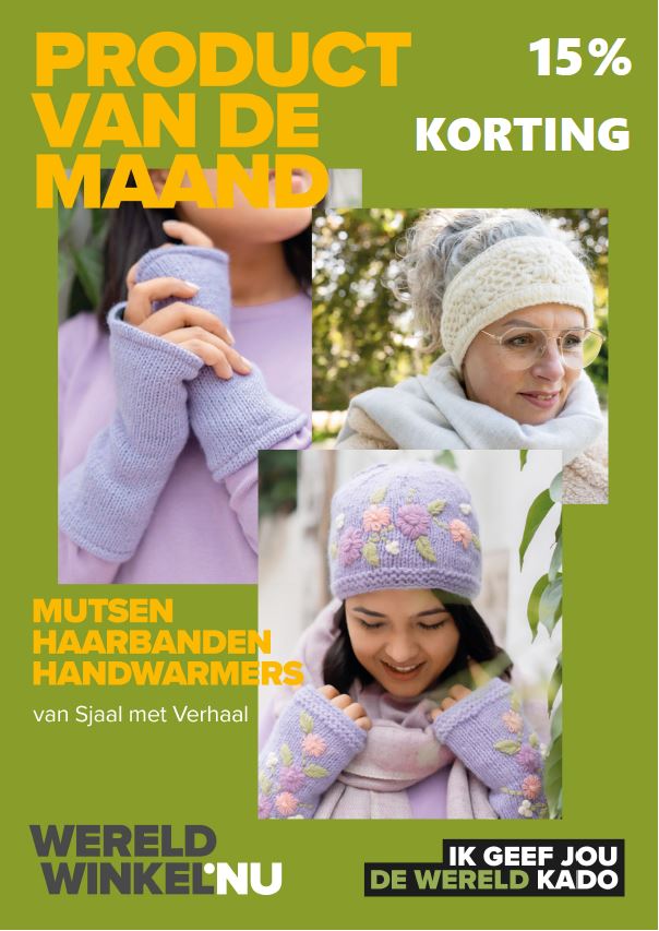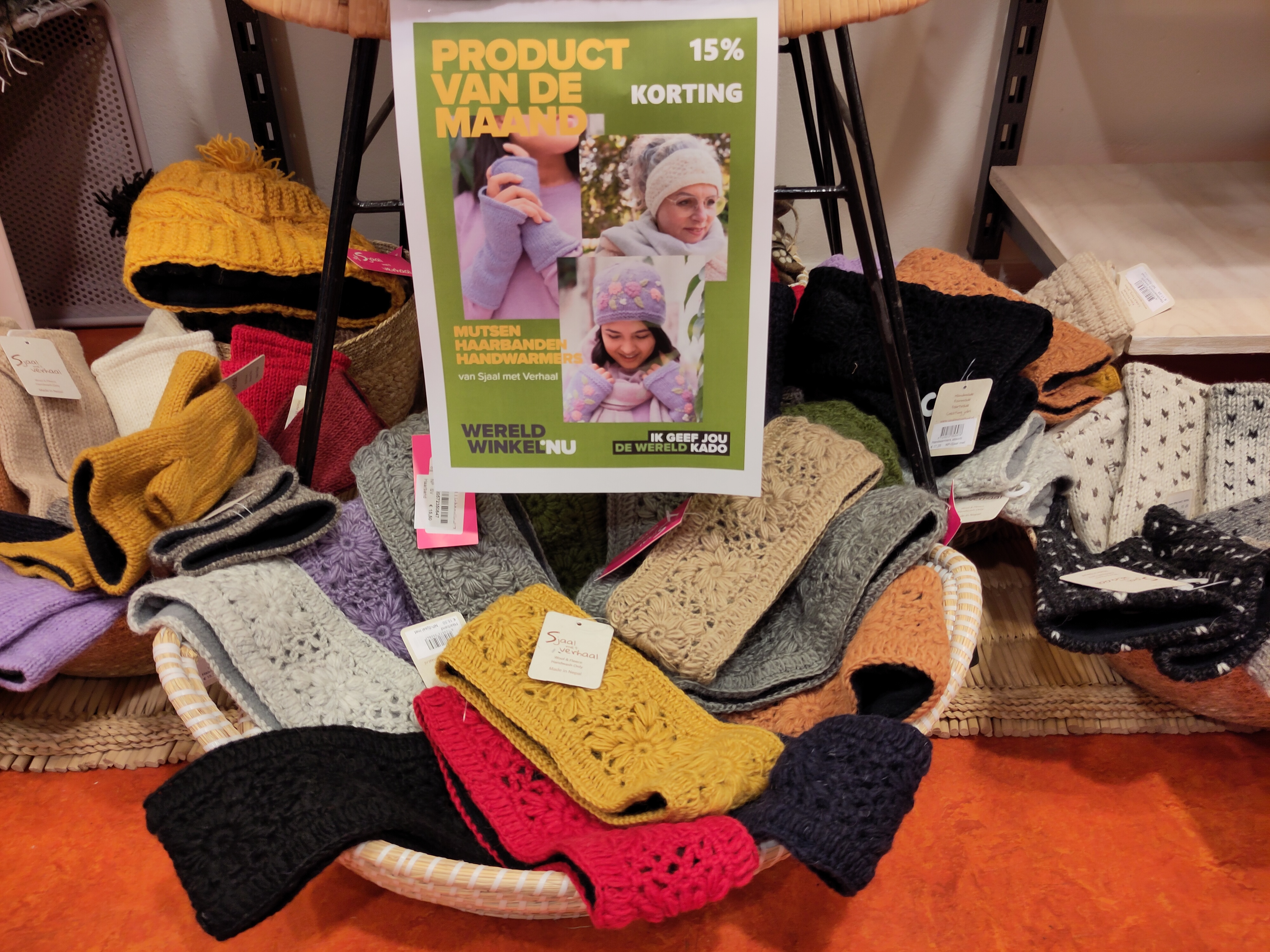 Warm de winter door met mutsen, handwarmers en haarbanden van Sjaal met Verhaal uit Nepal. De aanbieding van november wordt ook in december doorgezet.
