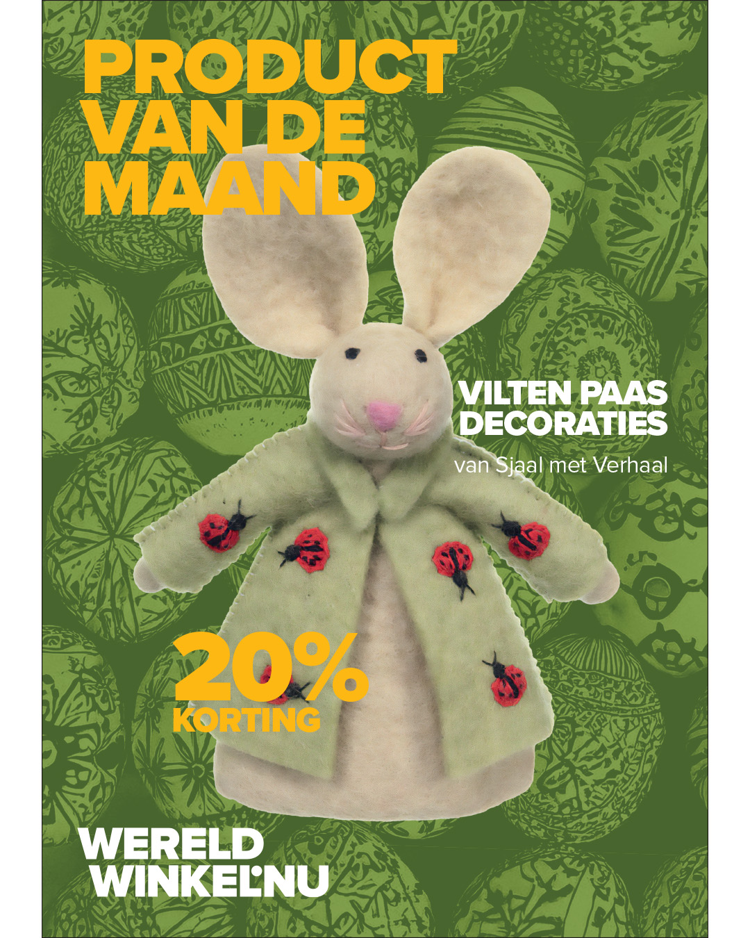 20 % korting op vilten Paasdecoraties van Sjaal met Verhaal van vrouwen in Nepal.