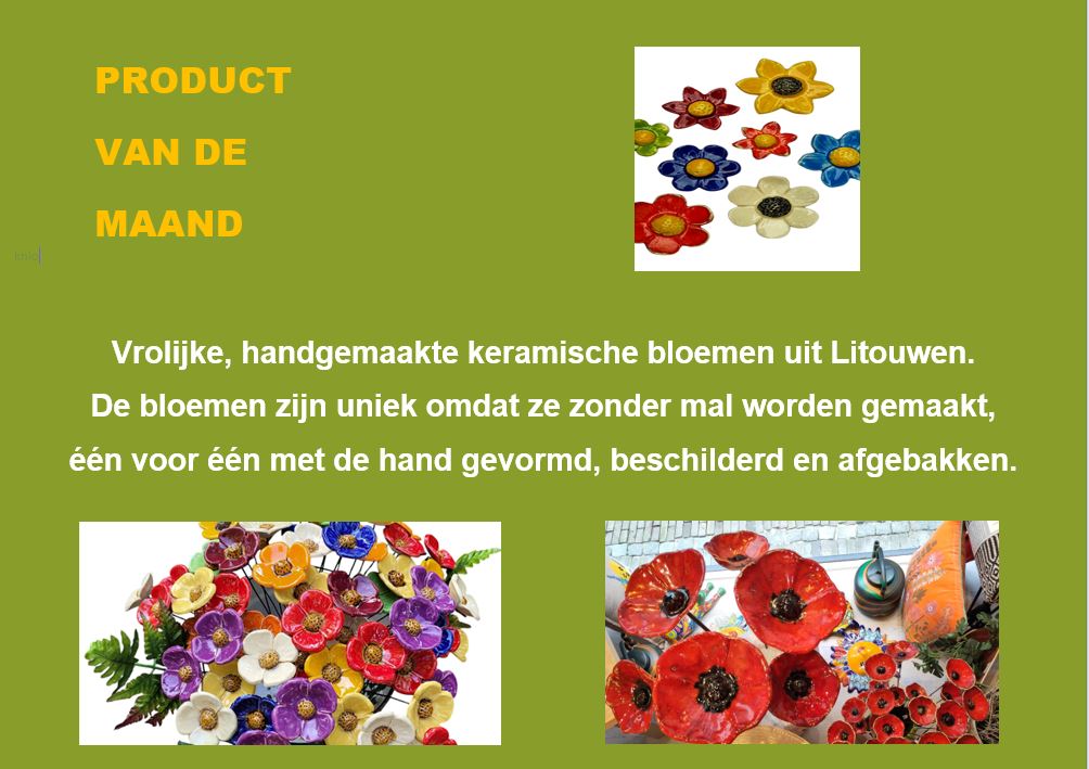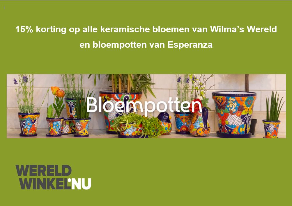 15 % korting op keramische bloemen uit Litouwen en bloempotten van Esperanza uit Mexico.