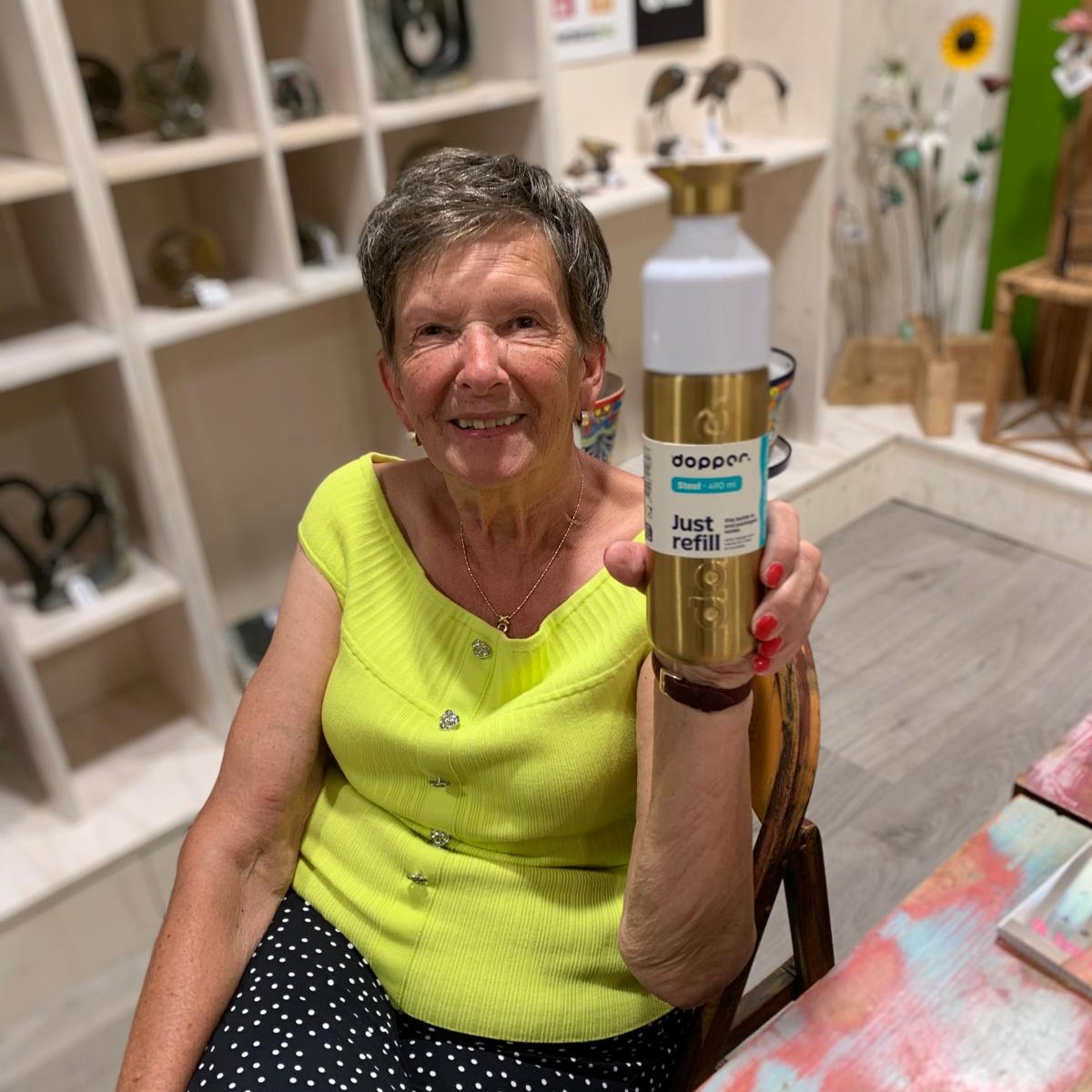 De gelukkige winnares was verguld met haar gouden Dopper.