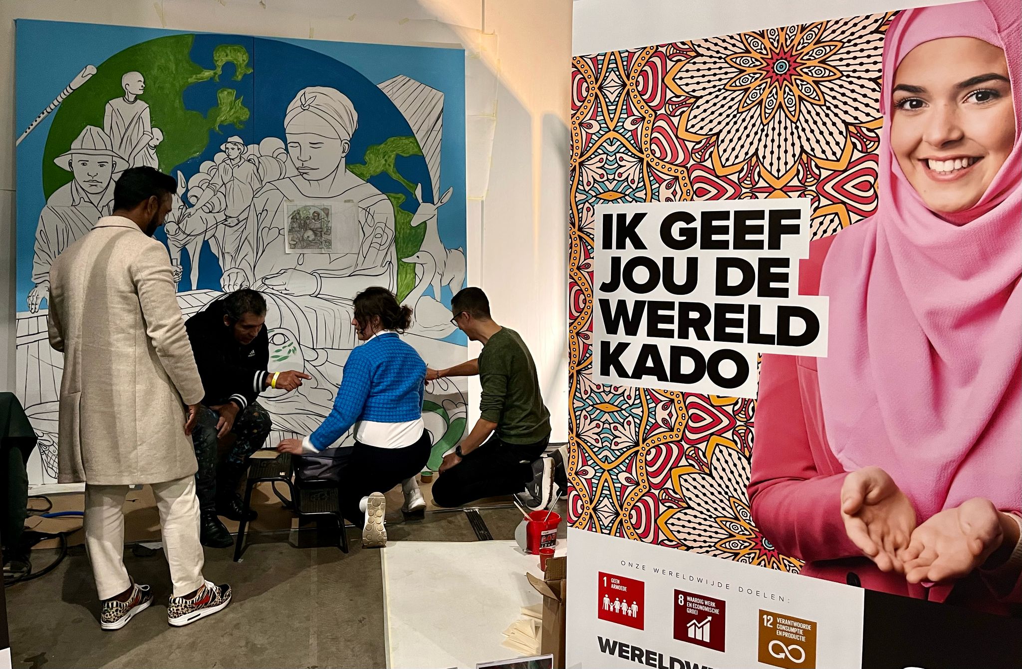 Op alle beursdagen van de Impact Fair nodigen de Wereldwinkels samen met VNG stedenverband impactschilder Manuel Alaníz uit. Zijn kunstzinnige manier van werken aan maatschappelijke ontwikkeling verbindt hij aan onze boodschap van eerlijke handel.