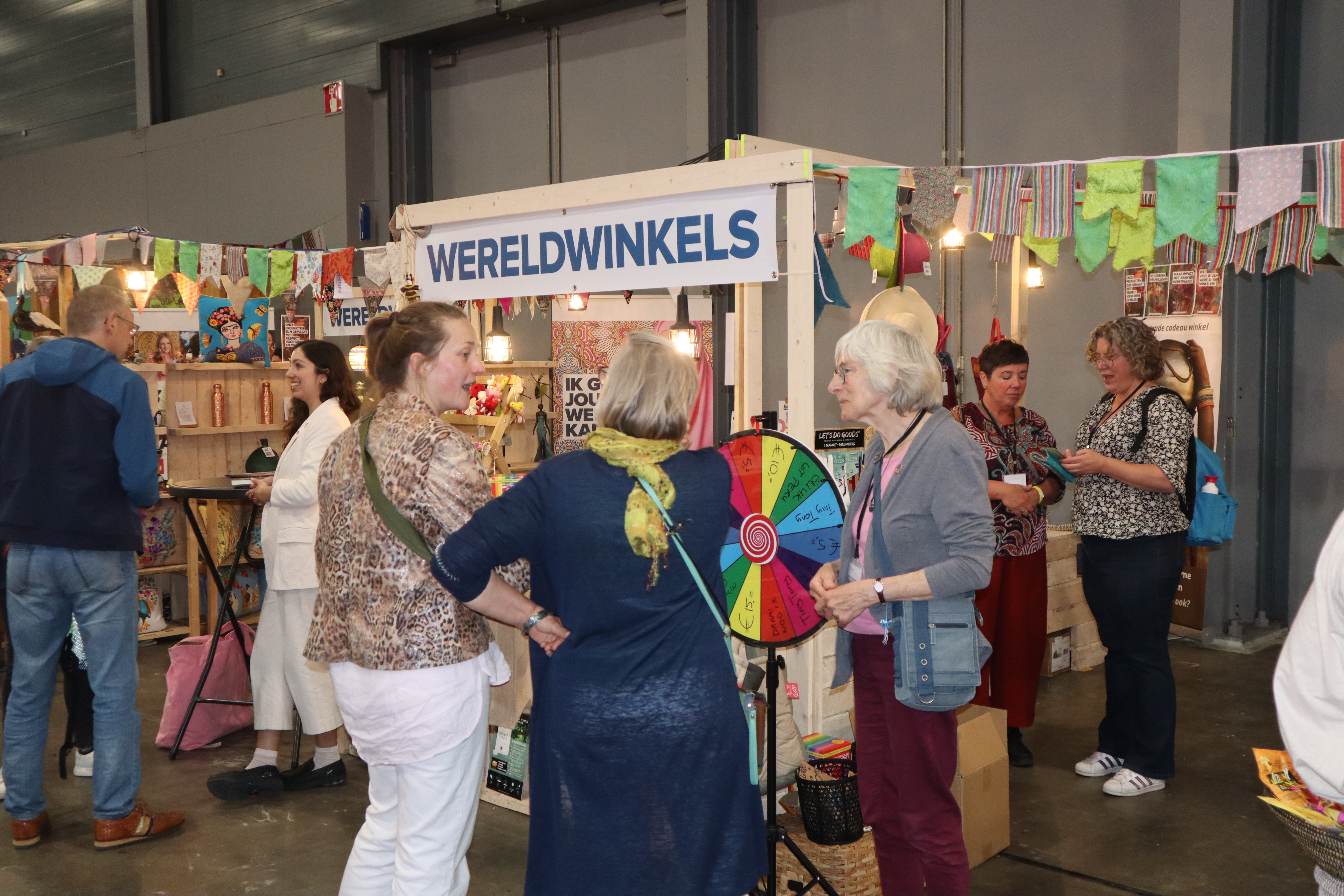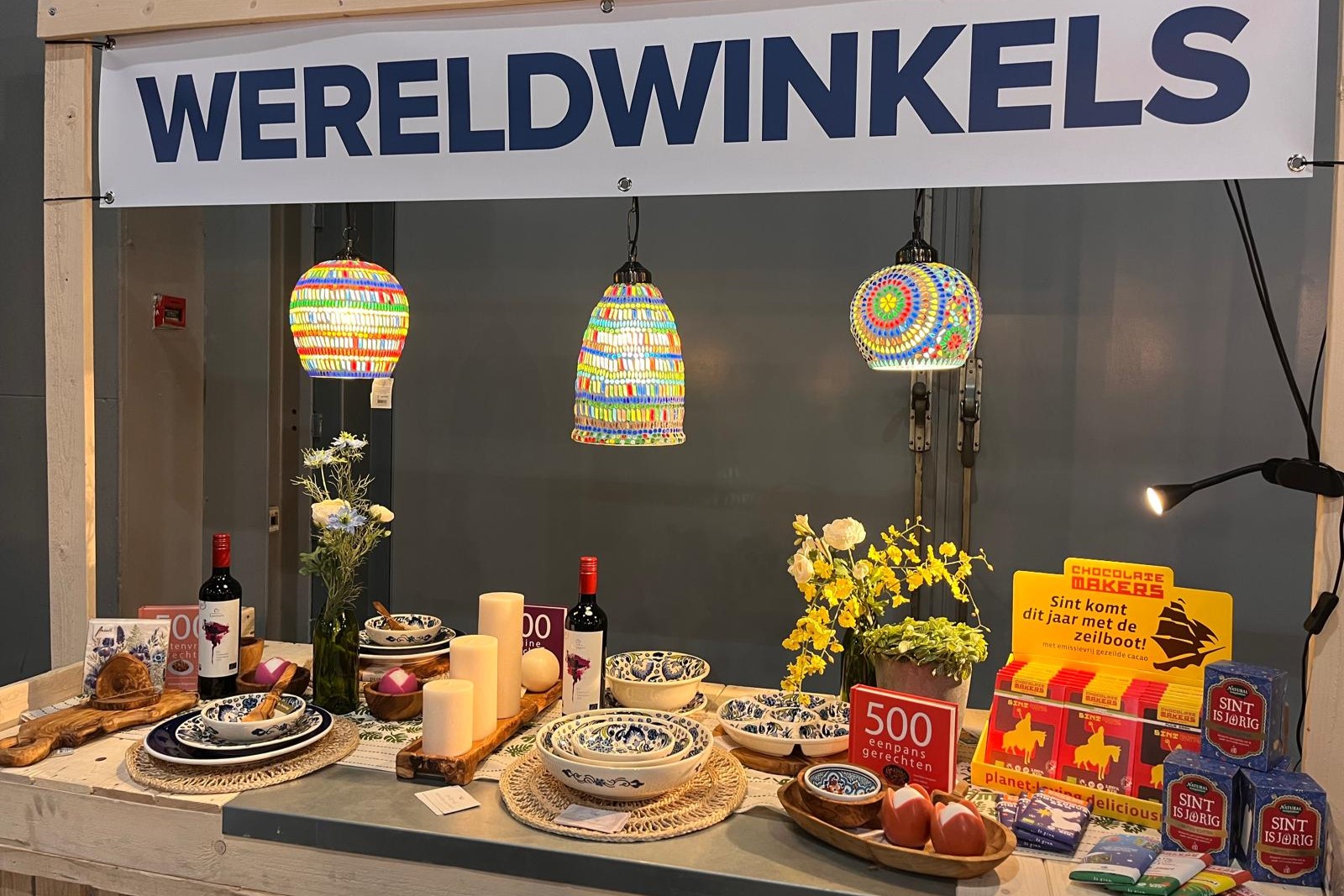 Wereldwinkels mogen als enige op de beurs verkopen, fairtrade en anderszins duurzame producten. Ze doen dat met verve in een eigentijdse 40m2 stand, die tevens de uitgang vormt van de beurs. Twee Wereldwinkelplatformen werken hiervoor samen. In totaal vertegenwoordigen ze circa 100 van de 170 zelfstandige Nederlandse Wereldwinkels.