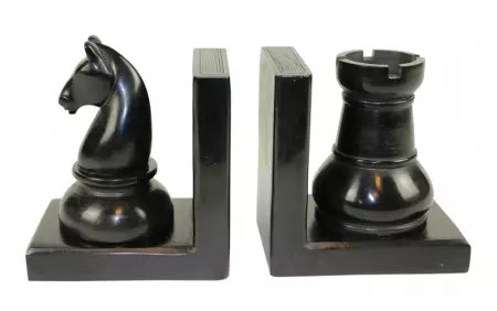 We geven in onze etalage aandacht aan de gebeurtenis en het evenement met massieve boekensteunen in de vorm van schaakstukken