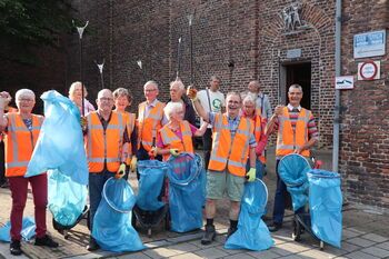 Zomerse temperaturen bij opschoonactie van ’t groen door samenwerkende organisaties binnenstad.